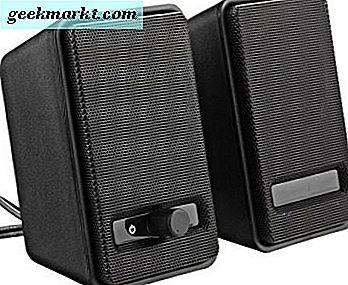 Som man kan förvänta sig av ett par högtalare som kostar under $ 20, erbjuder dessa små killar det minsta möjliga läget när det gäller funktionalitet. Det finns helt enkelt en volymkontroll med en på / standby-knapp och en USB-kabel som fäster till din dator för ström tillsammans med en 3, 5 mm-kabel för ljudet.