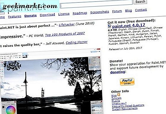 Paint.NET är lätt att rabatt när du landar på webbplatsen men uthållighet kommer att belöna dig med en av de enklaste användarna, snabbaste bildredigerarna runt. Det är helt gratis och kontinuerligt utvecklat och är en mycket trovärdig konkurrent till Photoshop för lättare arbete.