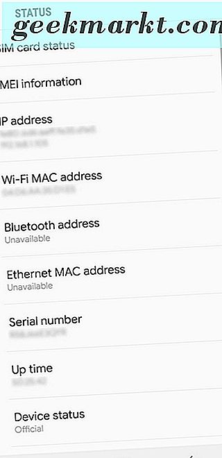Först måste du kolla din MAC-adress. Gå till Inställningar, sedan Om telefon och välj sedan Status. Härifrån ser du din nuvarande MAC-adress, och vi föreslår att du skriver ner den någonstans, bara i fallet.