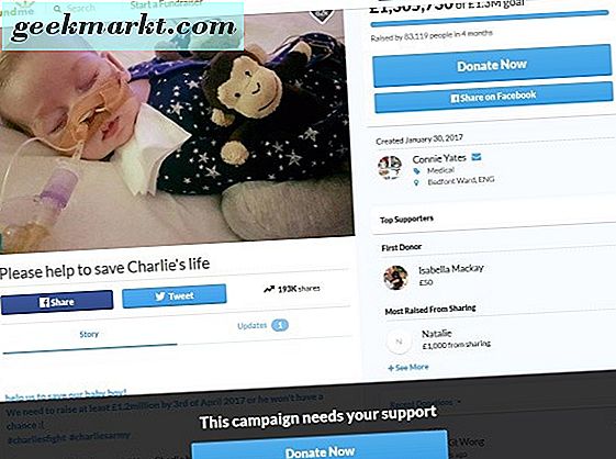GoFundMe lanserades 2010 och har skapat ganska följande. Det ger en enkel plattform där vem som helst kan starta en kampanj och människor kan snabbt och enkelt ge en donation. Webbplatsen tar ett snitt för att hjälpa till med löpande kostnader, men resten går direkt till den orsaken.