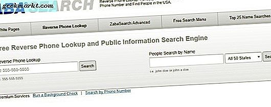 Zabasearch är ett annat stort förråd av data som är värt att överväga. Den innehåller sina egna vita sidor, många sökkrav och en ganska omfattande omvänd telefonuppslagningsfunktion. Lägg till telefonnumret i sökrutan i mitten och välj Sök.