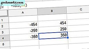 Google Sheets innehåller en ABS-funktion så att du snabbt kan få absoluta värden för minusnummer utan att redigera sina celler. Det är en grundläggande funktion som du kan skriva med den här syntaxen: = ABS (värde) . ABS-värdet kan antingen vara en cellreferens eller ett nummer.