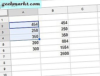 Kopiera funktionen till de andra cellerna med fyllhandtaget. Välj B2, vänster-klicka på cellens nedre högra hörn och dra markören över B3 och B4. Släpp sedan vänster musknapp för att kopiera ABS-funktionen till de cellerna som visas på skärmbilden nedan. Denna Tech Junkie-guide ger ytterligare information om hur du använder fyllnadshandtaget i Google Sheets.